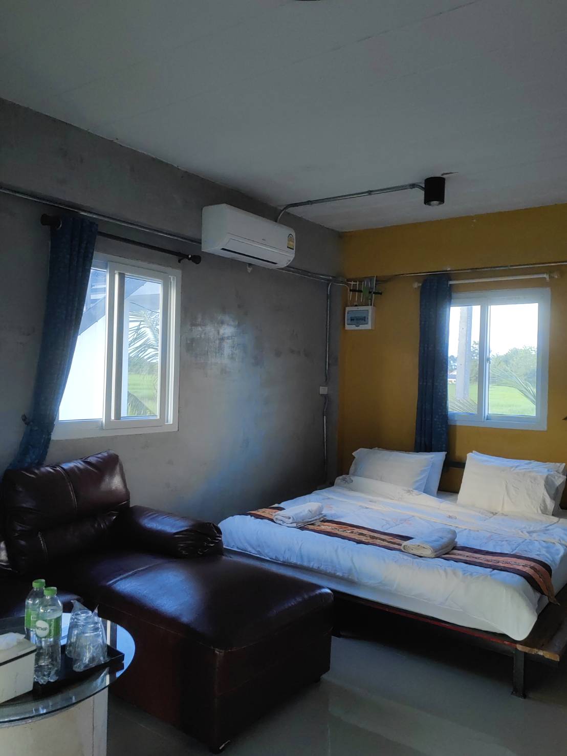 Stay at ‘Baan Rai Phon’, a small resort located 10 minutes from our land. Sleep in an air-con room with private bathroom in a calm place surrounded by rice paddies and mountains. You will enjoy watching the sunrise and sunset from the small garden and easily find a spot for your yoga or stretching routine. The price includes the transportation from/to our land by car.