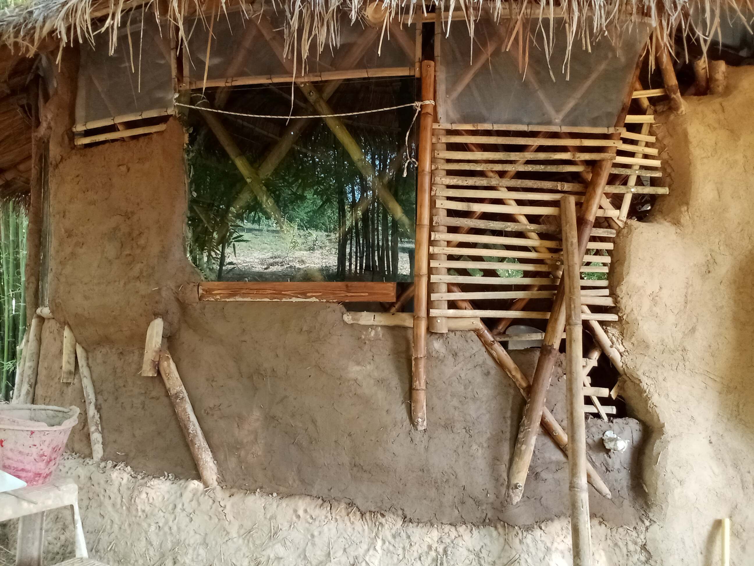 The story… The yurt was built from November 2019 next to the earth bedroom as a round living room and office space. Using local bamboo and soil from the land, its coolness makes it a pleasant room.