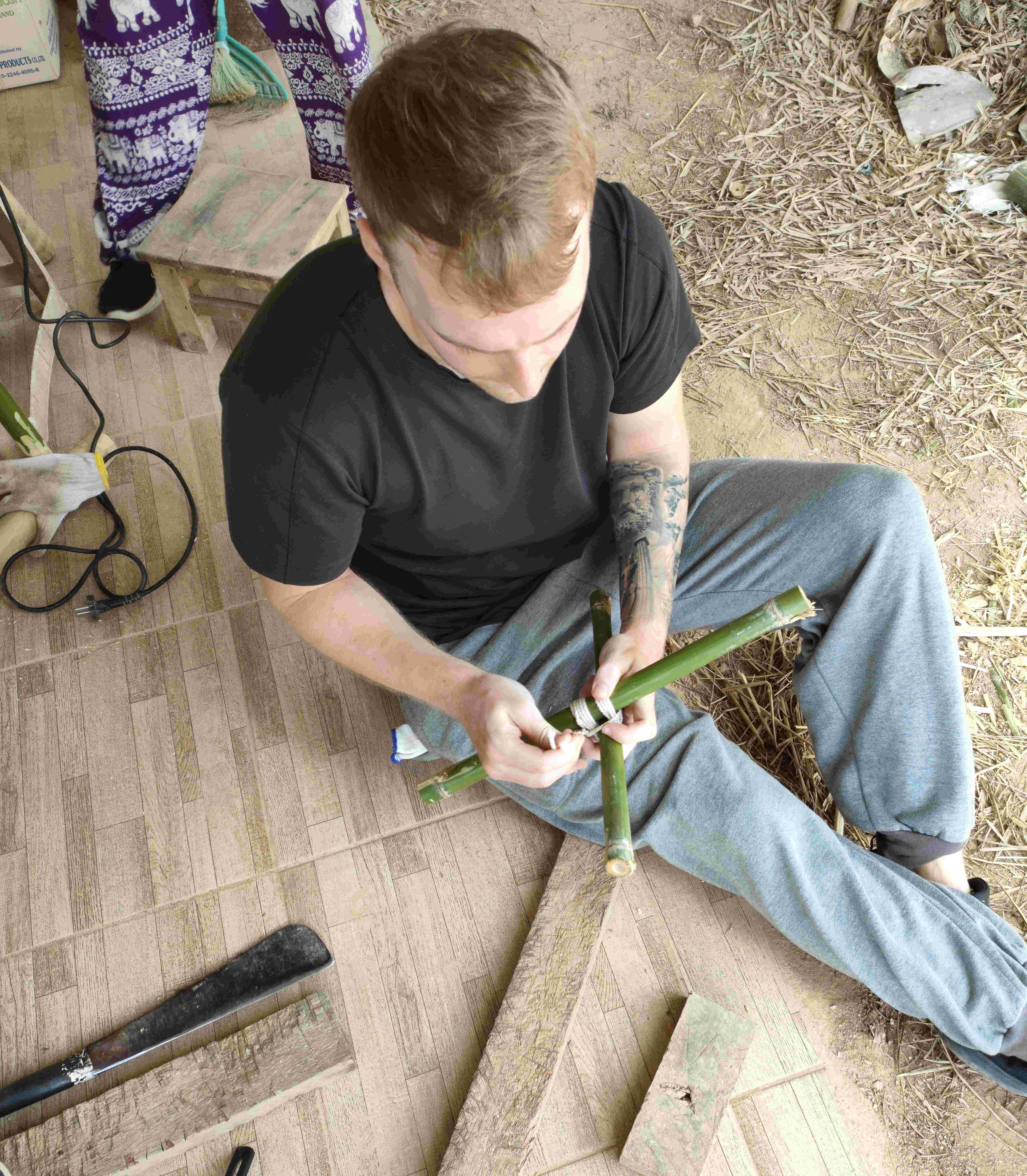 You’ll gain skills and confidence, working side-by-side with like-minded people creating something lasting and unique with bamboo cut in our land.