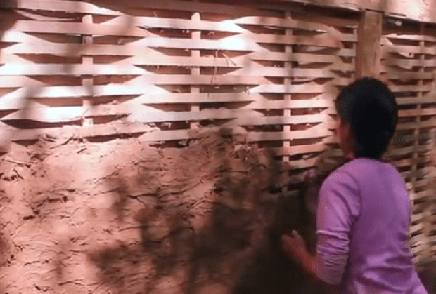 Techniques used for the walls (photos below)): adobe bricks dried in the sun, traditional free-form cob; cob wall made with form work (also known as shuttered cob/slipform cob), wattle-and-daub technique.