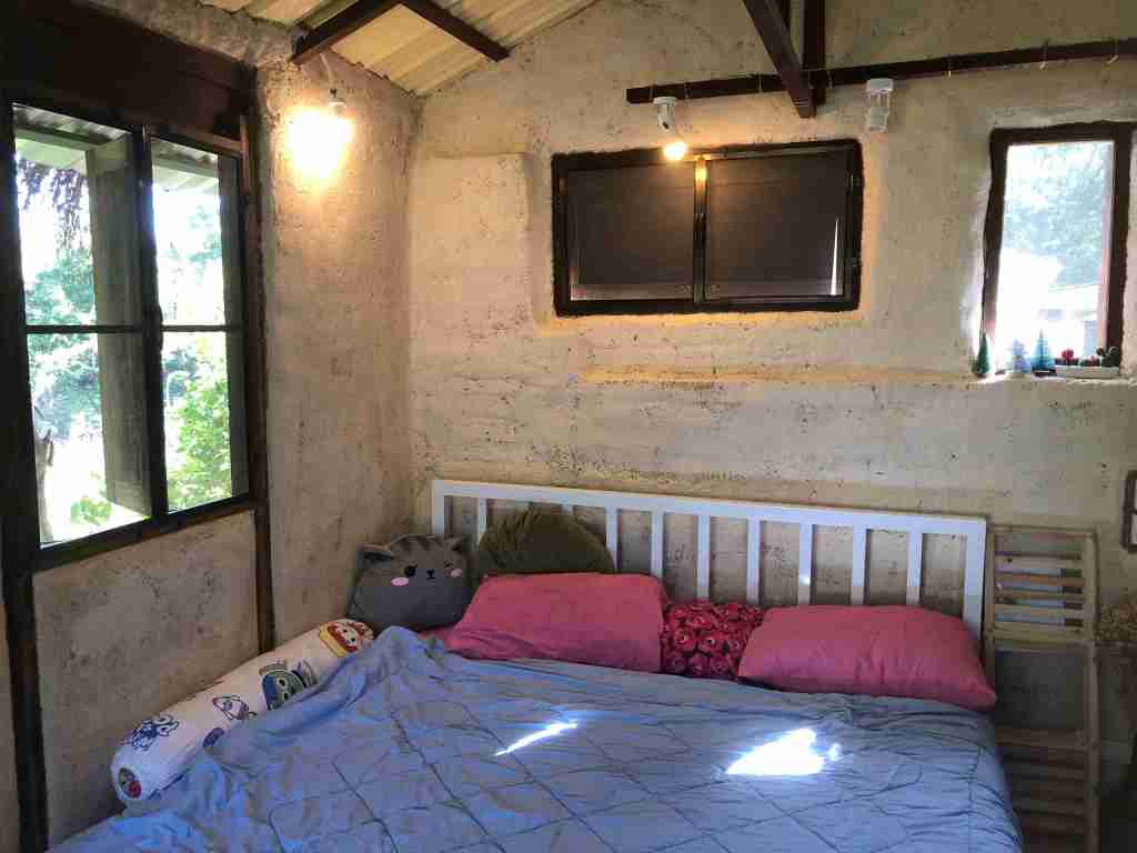 The story… We wanted to build this room in an area with no shade from trees or bamboo, to show the guests it is possible to make a room interior cool by using a few other techniques. The construction was done by BaanDinDoi team, several workers, and workshop participants who learnt how to build through a real case.