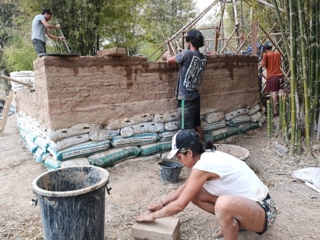 3 Previous Next Published August 22, 2020 at 456 × 342 in An ecological, inexpensive and healthy earth and bamboo house gravel bags, earth bags, Cob thenadobe bricks