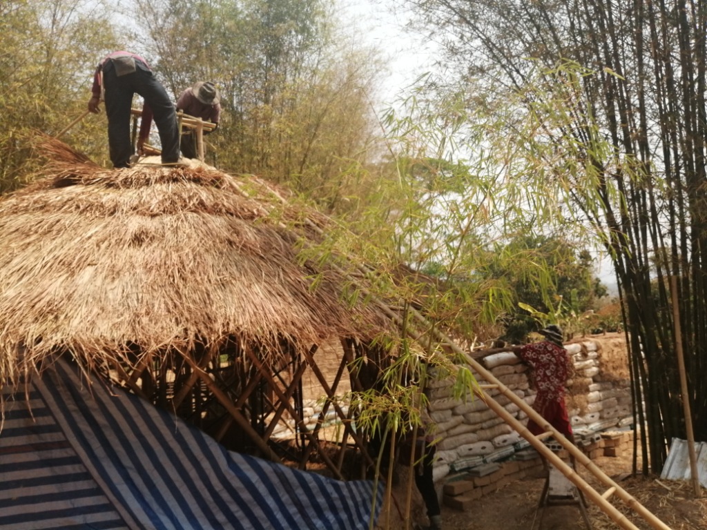 dav Previous Next Published June 29, 2020 at 1024 × 768 in An ecological, inexpensive and healthy earth and bamboo house Thatch roof almost done Like Loading...
