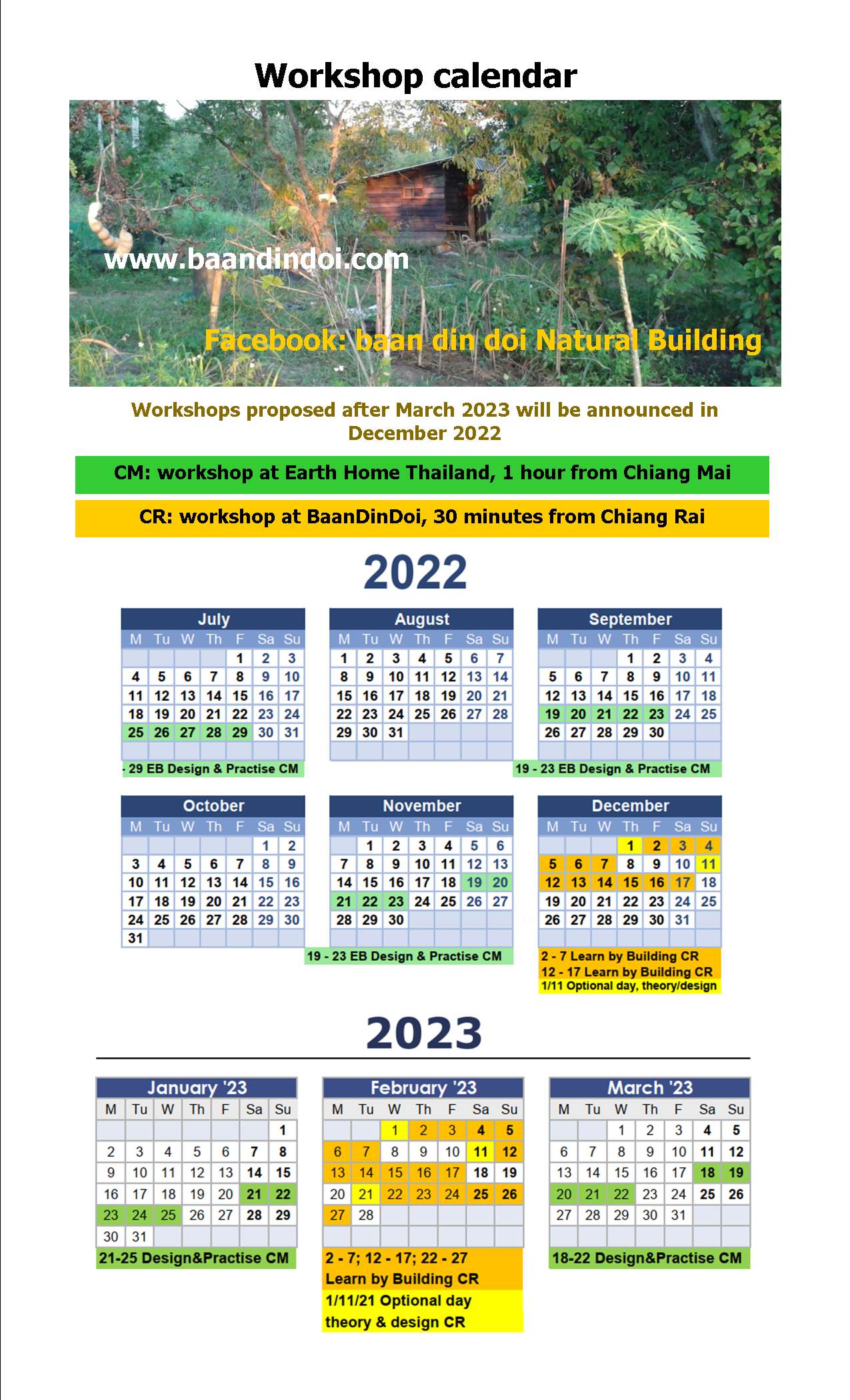 Workshop organized by BaanDinDoi and hosted by ‘Earth Home’ near Chiang Mai (www.earthhomethailand.com)